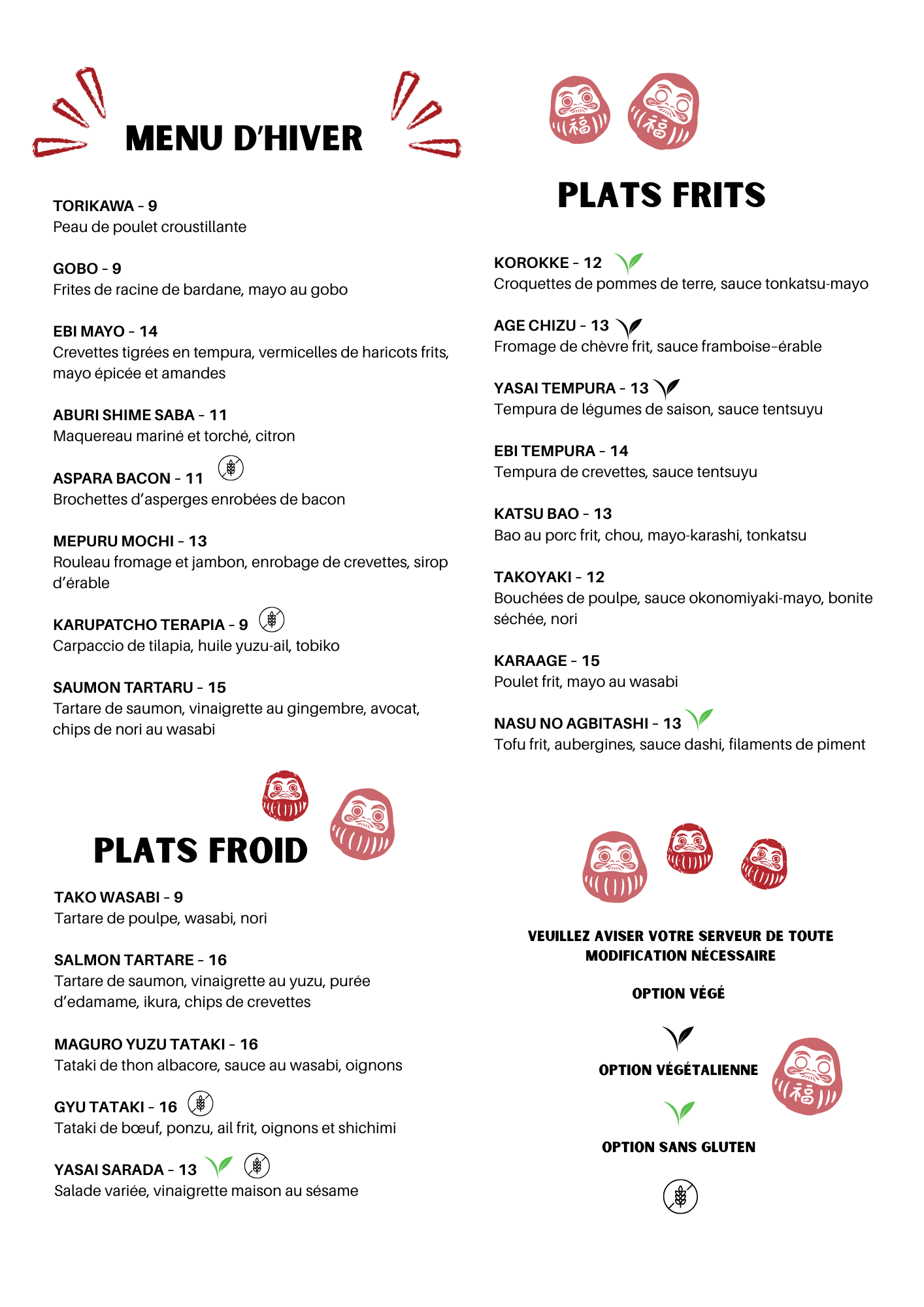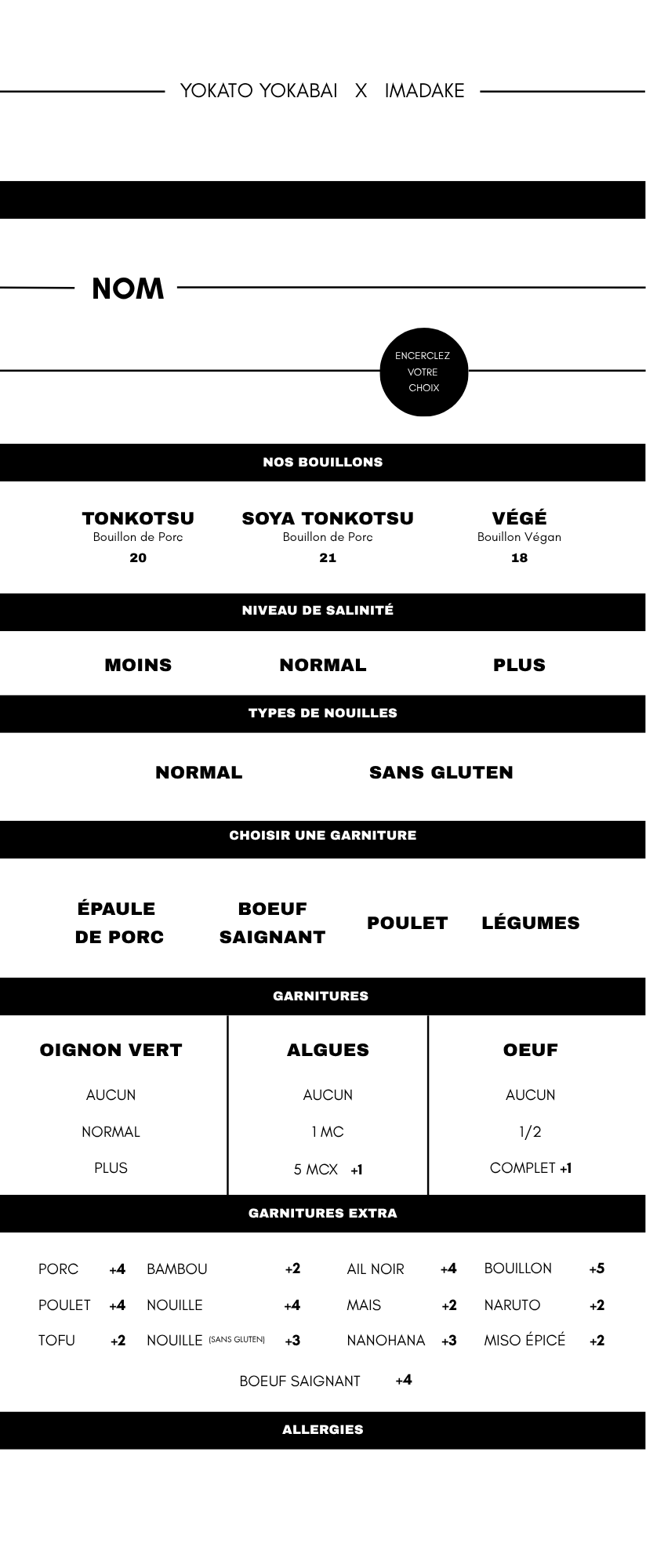 Menu fixe Imadake